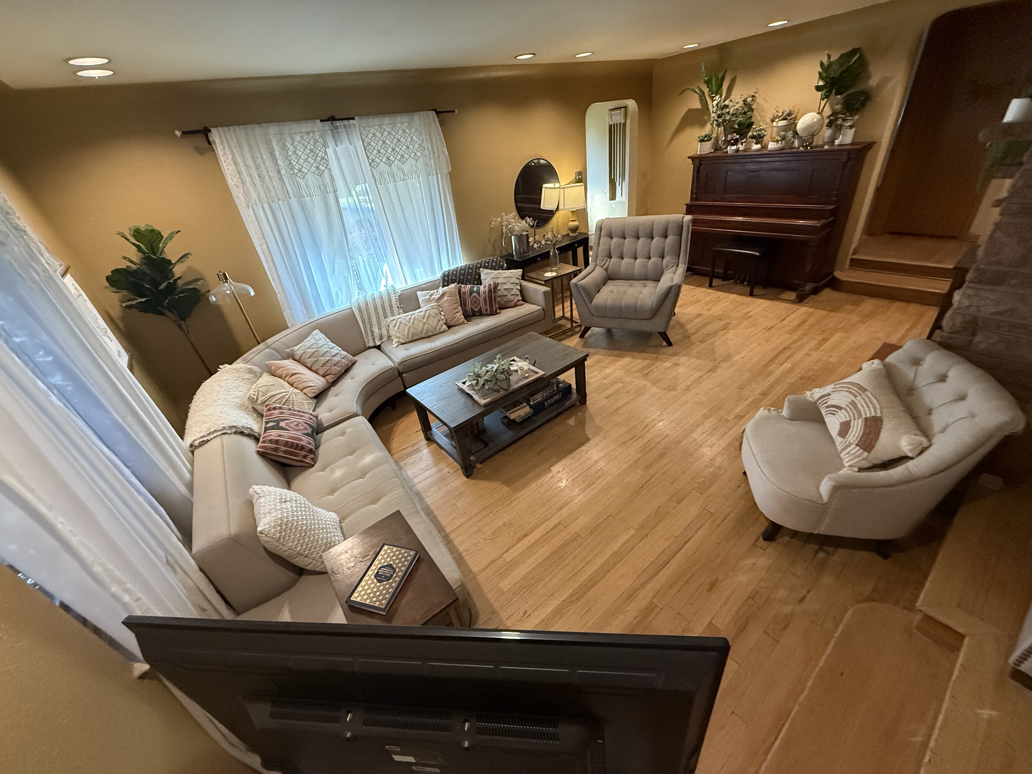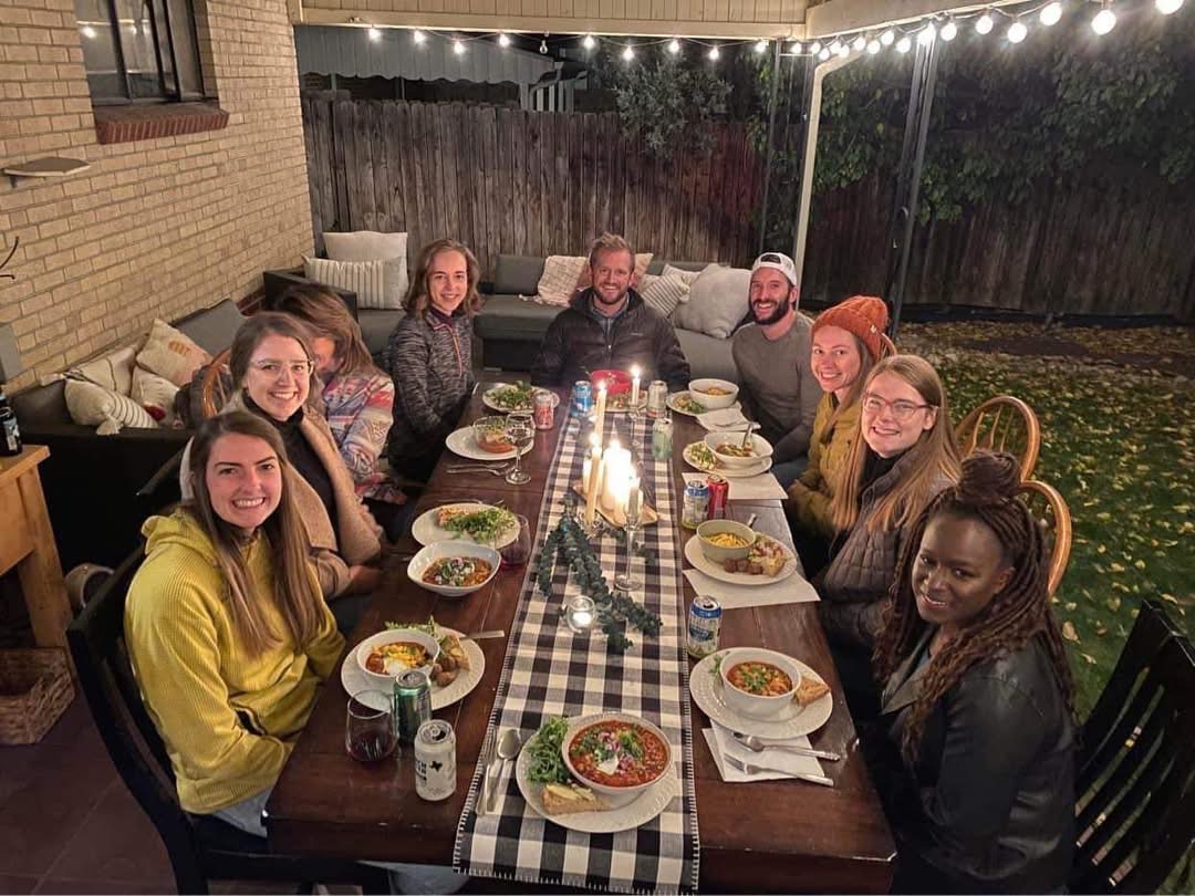 One of us coordinates missions at a high school, one works remotely for Young Life (WFH 2-3x a week), and I’m a freelance film editor / designer (WFH 3x a week). We’re all busy (often out nights and weekends), but we love coming home to a restful, supportive space. We enjoy hosting dinners, parties, and backyard movie nights. 2 of us are members at connected churches.