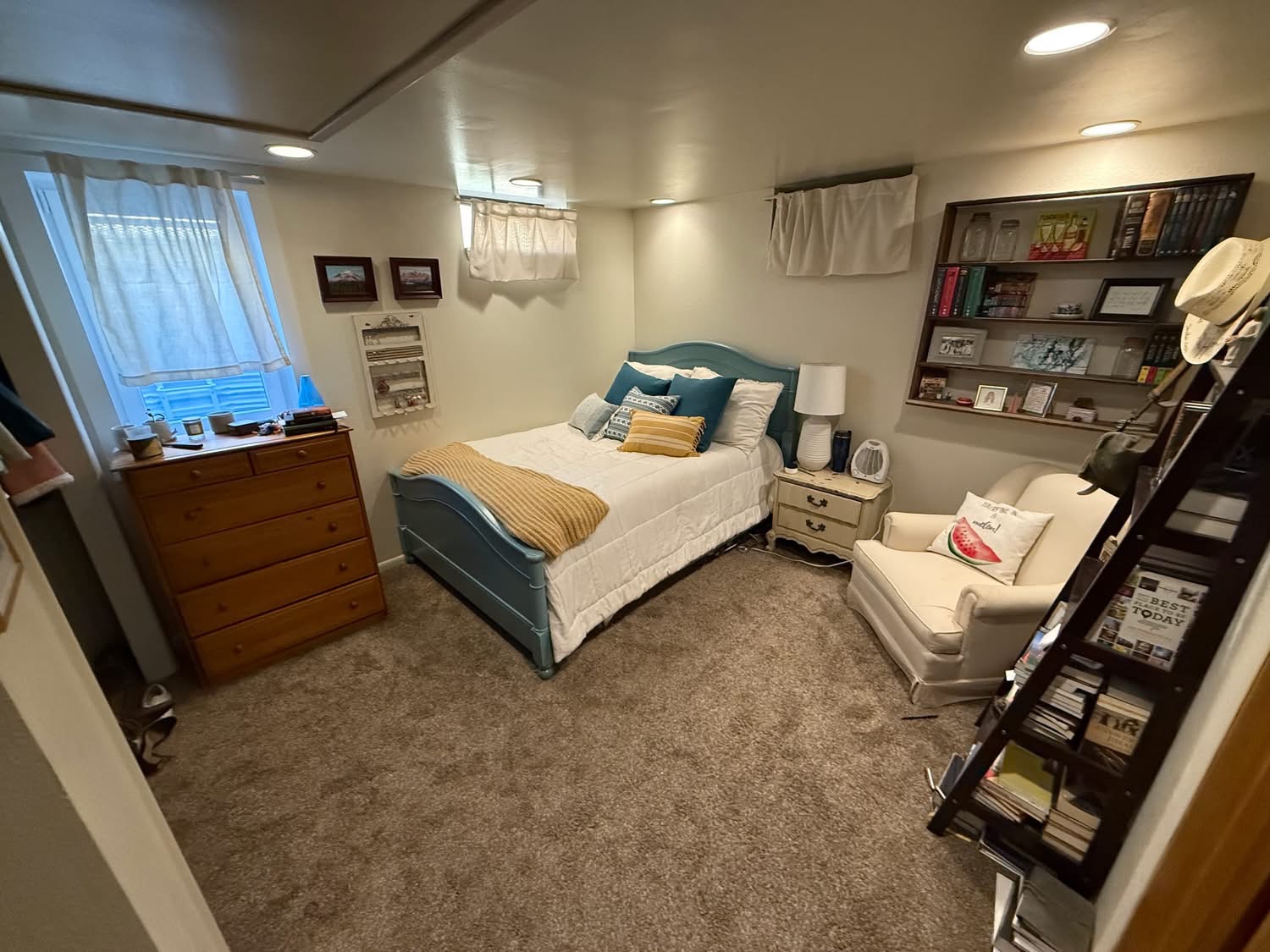 Room: Freshly remodeled, bright basement room available asap. It’s very cozy, sound proof, and has smart lights that can come on with the sunrise. You’d share a clean, heated tile bathroom with me. Available ASAP.
