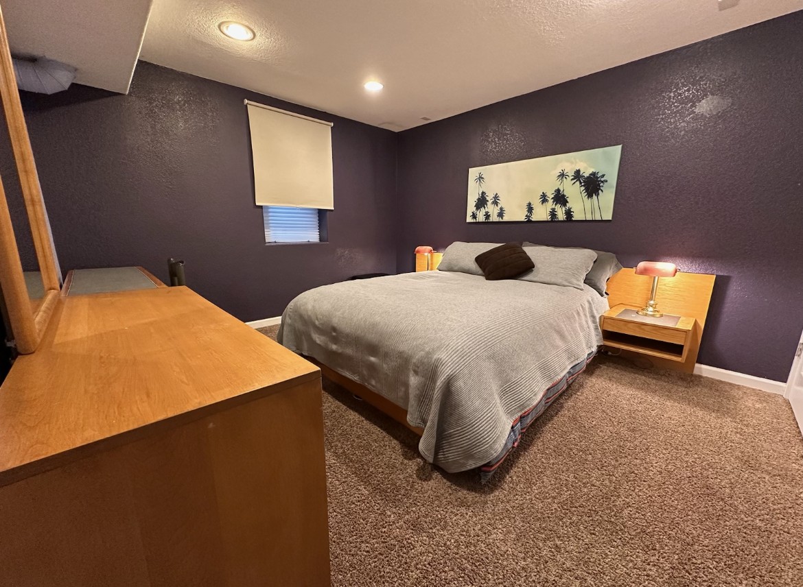 Living space and kitchenette are on the main floor. Stackable W/D with shower are on basement level with 2 separate bedrooms.