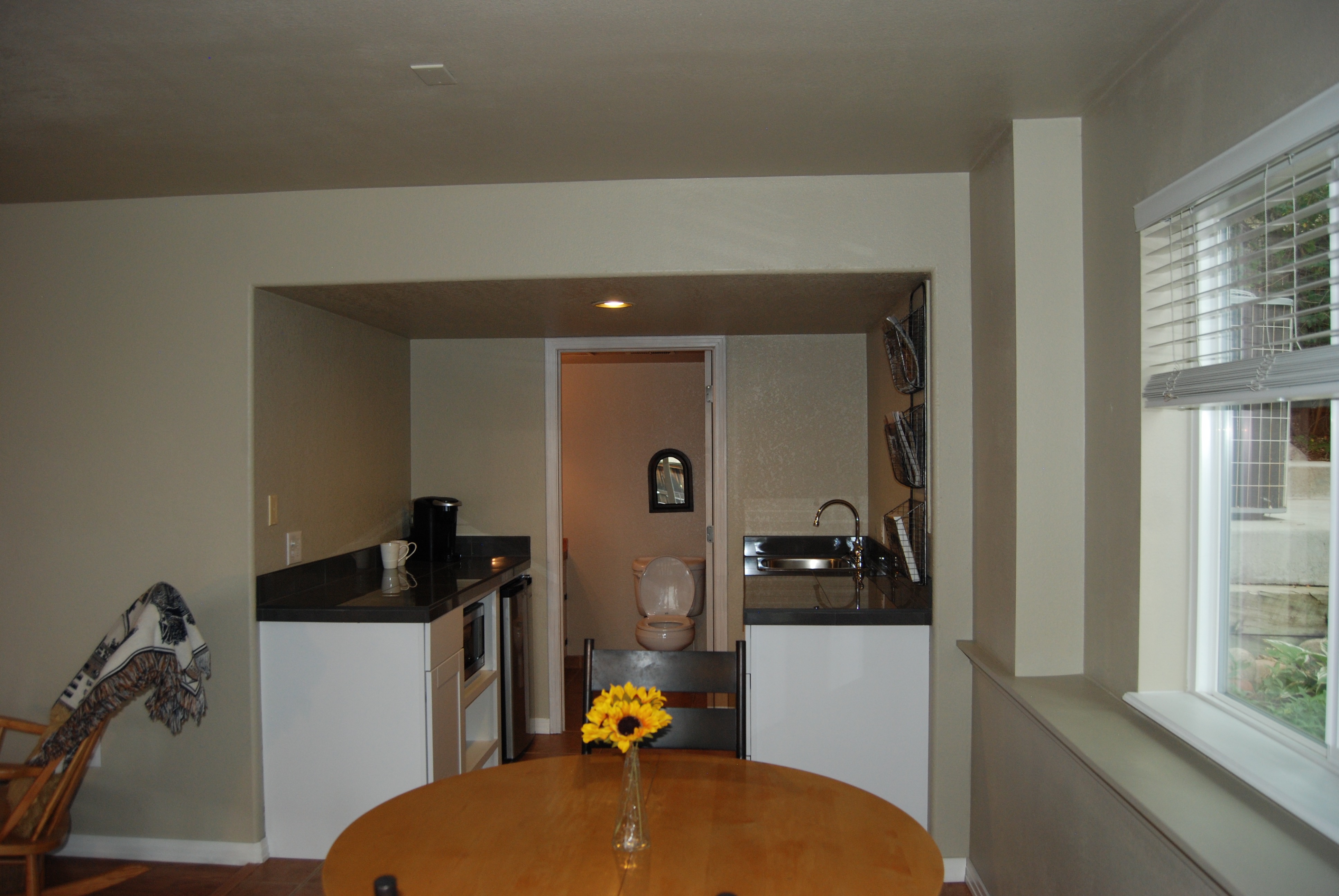 - Kitchenette with microwave, mini fridge, toaster oven, and coffee maker