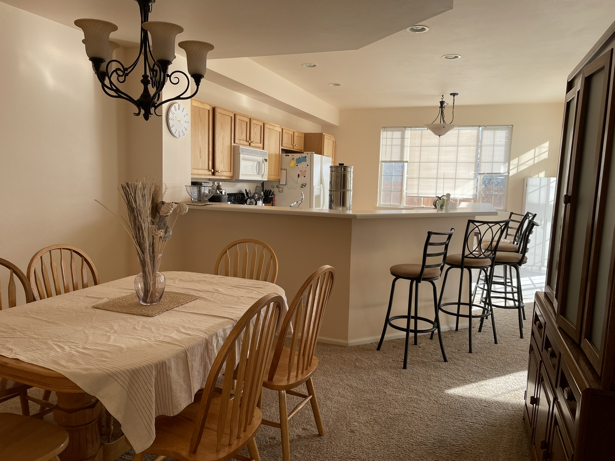 - Kitchen has lots of storage space and there’s an extra fridge in the garage.